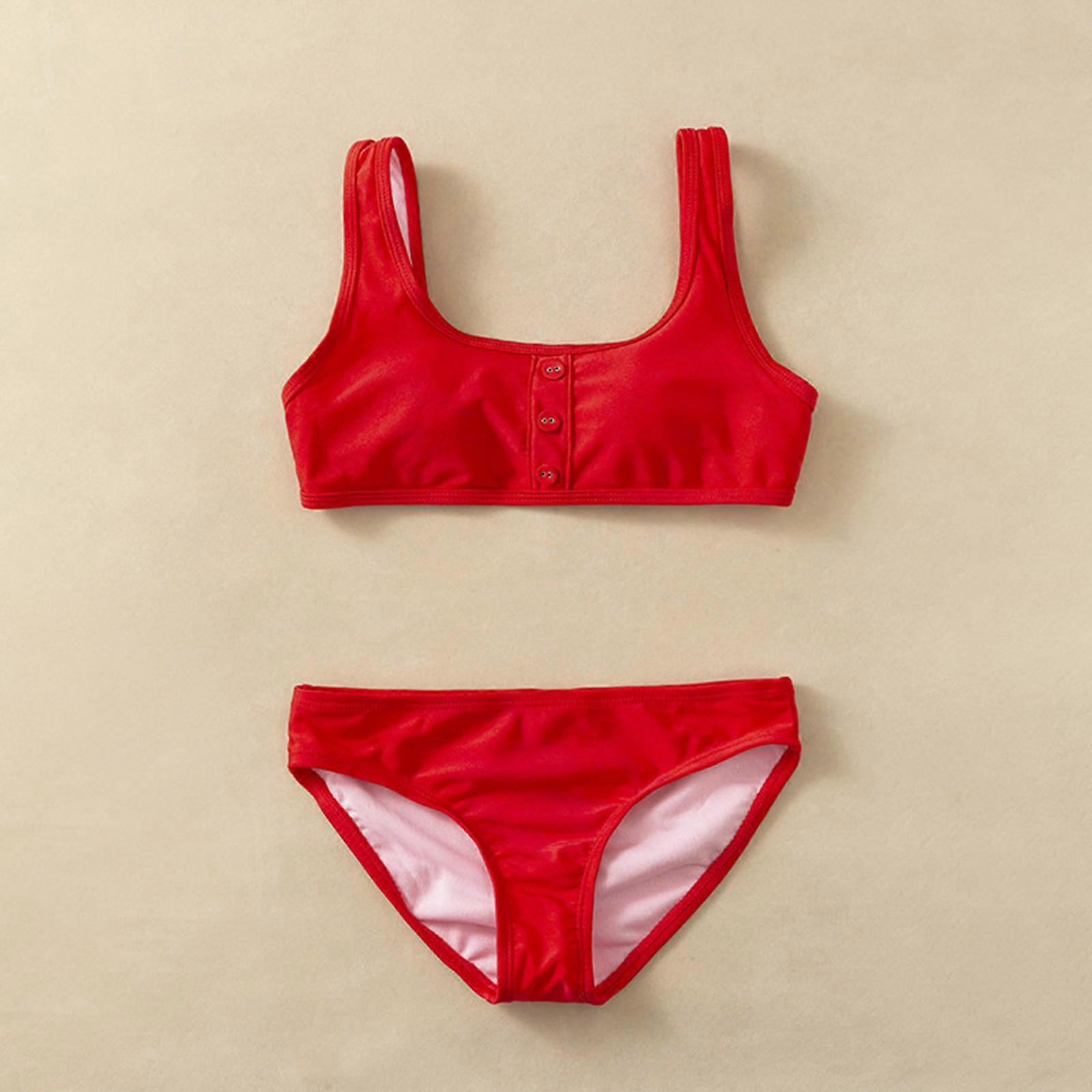Girls Two Piece Swim Suit Toddler Girl 2 Piece Swimsuit Sport Red Soild High Waist Bikini Set Long Sleeve Toddler Swim Suit Girl