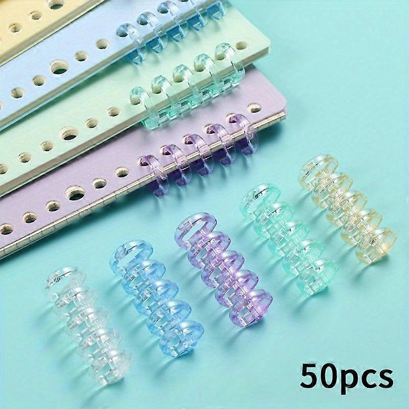 50-Pack Multicolor 5-Ring Plastic Binder Spines - Removable Snap Closure Rings for Loose-Leaf Paper and Office Organization