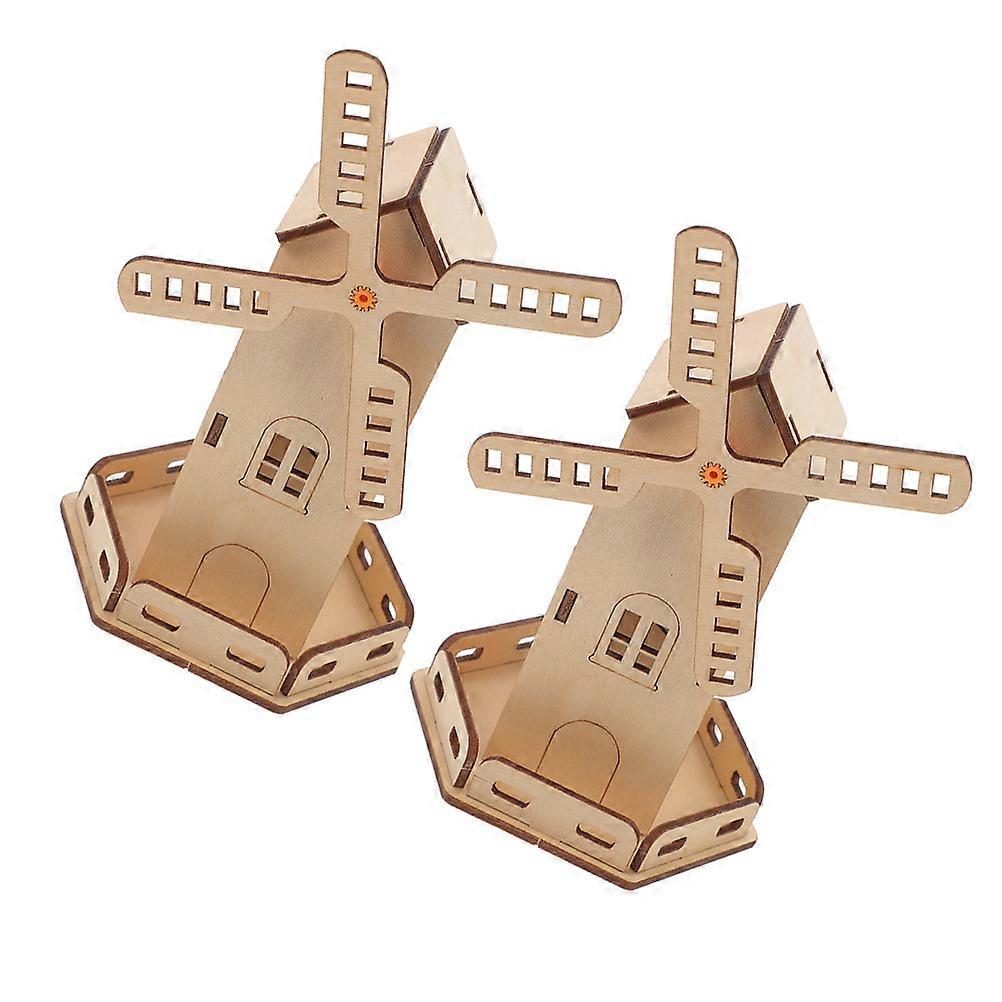 Solar Powered Toy Kit for Kids 2Sets Wooden Solar Windmill Assembly