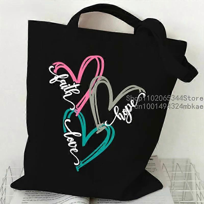 Faith Printed Heart Graphics Women Canvas Shoulder Tote Bag Casual Fashion Shopping Cases Bag Storage Handbag Christian Gifts
