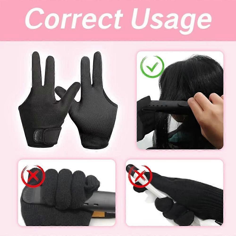 New 3 Finger Heat Resistant Gloves Reusable Black Curling Wand Glove Perming Gloves