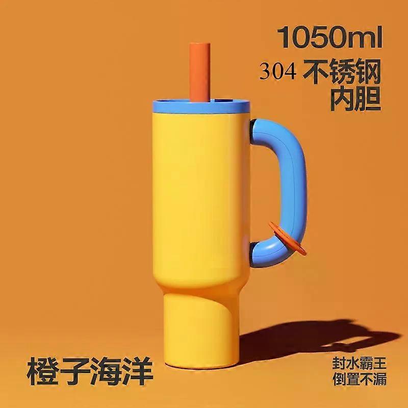 40oz 304 Stainless Steel Straw Insulated Ice Cup Large Capacity Thermal Mug Tumbler with Handle Stylish Insulated Coffee Cup