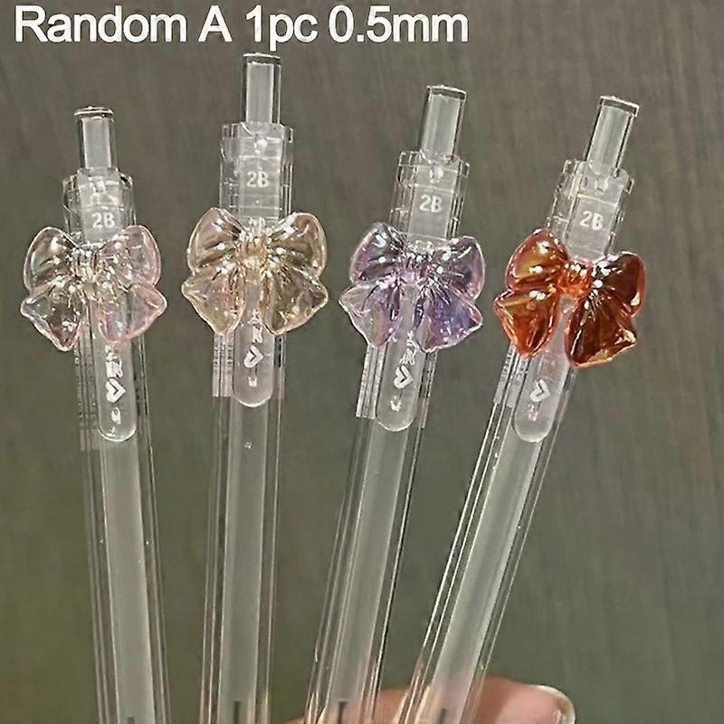 High-concerned chemical : None<br>Lead Hardness : 2B<br>Writing Point : 0.5mm<br>Body Material : Plastic<br>Origin : Mainland China<br>Type : Mechanical Pencils<br>Product Name : Mechanical Pencil<br>Material : Plastic<br>Size : 14CM<br>Features 1 : Transparent Color Bowknot<br>Features 2 : Smooth Writing Experience<br>Features 3 : Easy To Use<br>Usage : Portable<br>Package including : 1/4PCS Mechanical Pencil<br>