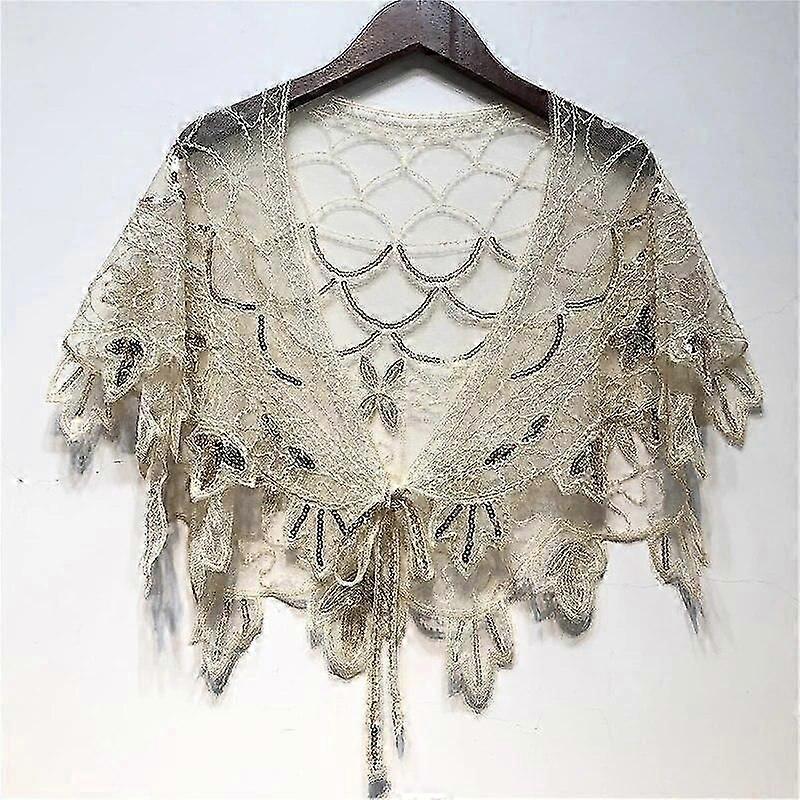 Women's Vintage 1920s Shawl Beaded Sequin Bolero Flapper Evening Cape!ZZ51