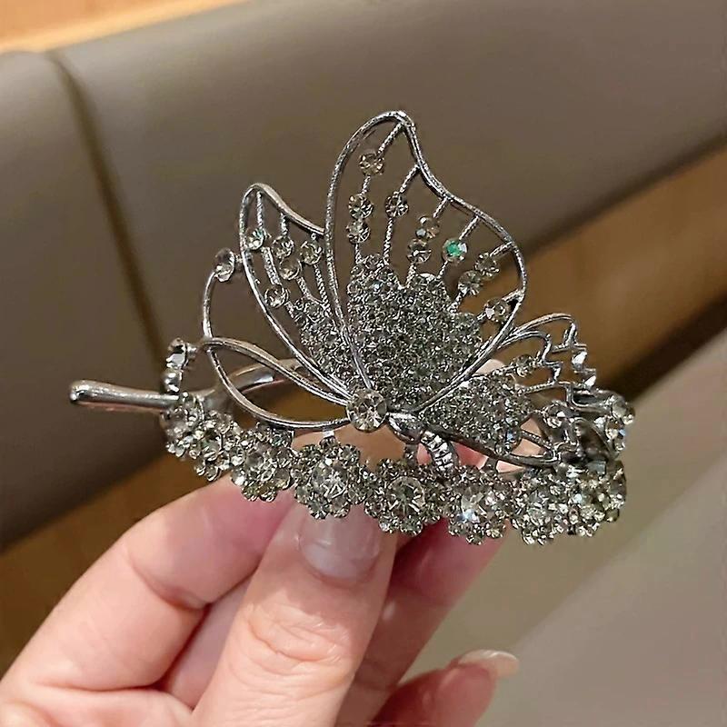 High-end light luxury word clip, elegant and exquisite headwear zinc alloy rhinestone butterfly twist clip 1Pcs