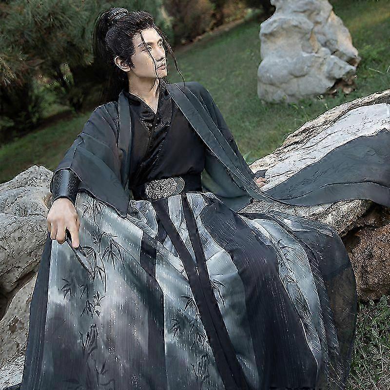 Bamboo Print Song Bei Zi Black Martial Arts Cross-collar Hanfu Men's Black Suit!ZZ51