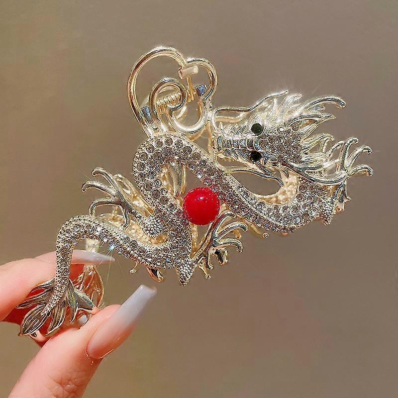 For Women Hairpin with Red Imitation Pearl Temperament Shark Clip New Chinese Style Dragon Rhinestones Hair Claw Clips