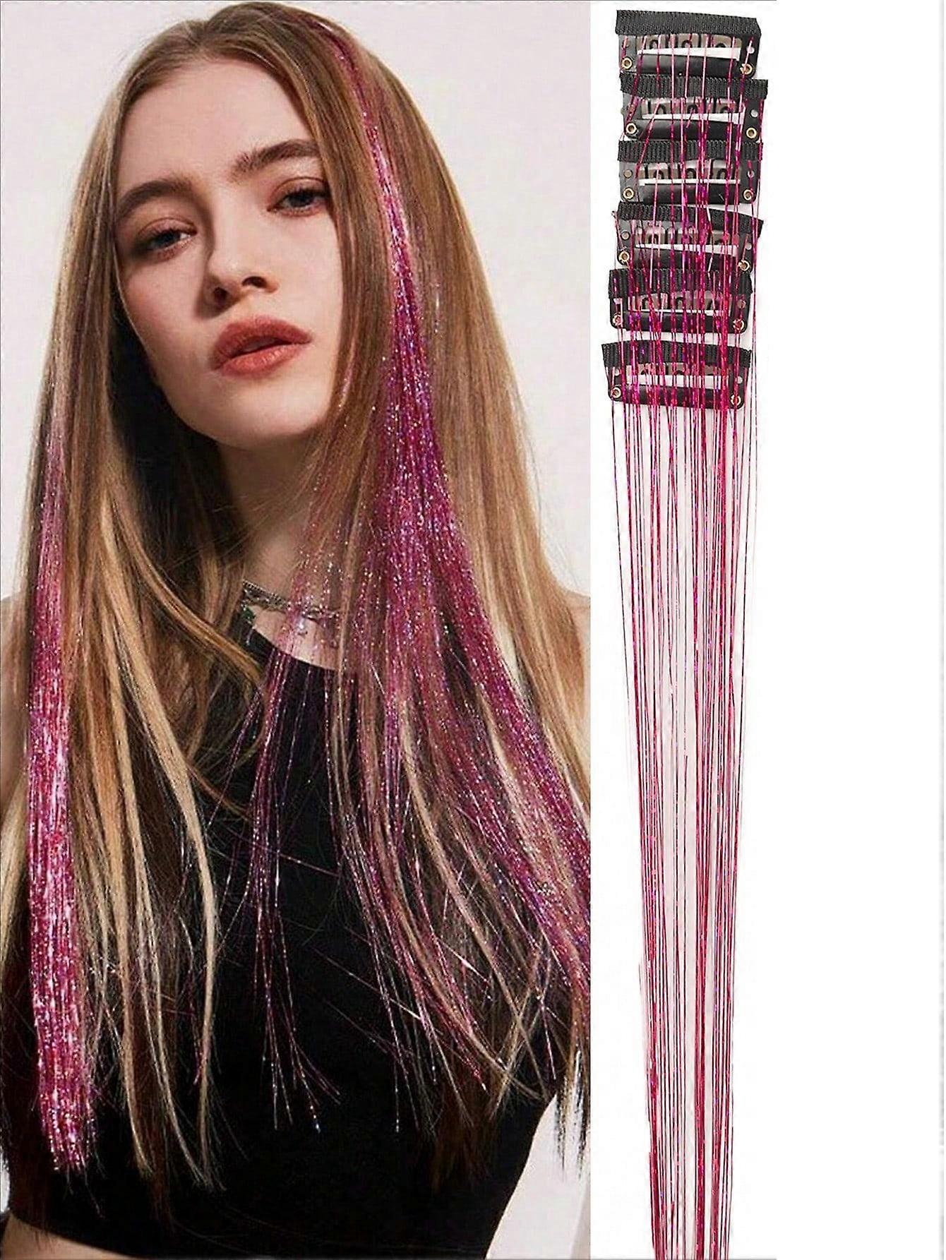 6/12PCS Shiny Hair Tinsel Set Colorful Glitter Hair Accessories 20inch Clip-in Hair Tinsel Extensions Wig for Women Girls Party