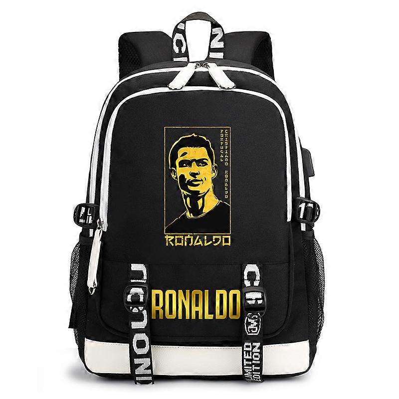 Ronaldo printed student schoolbag campus ren's backpack usb outdoor travel bag black casual bag