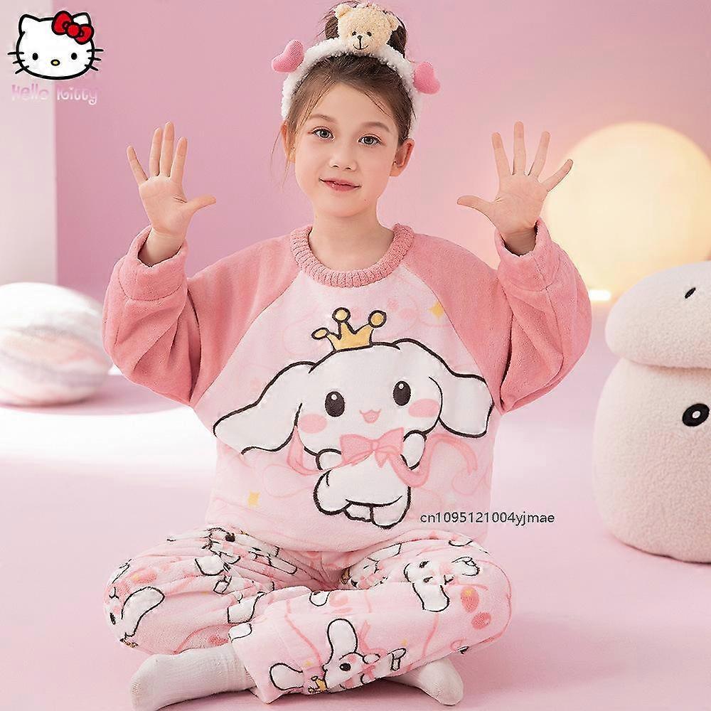 Anime Sanrio Kuromi Children's Pajamas Thicken Flannel Coral Fleece Girls Cute Sleepwear Comfort Autumn Parent-Child Homeclothes