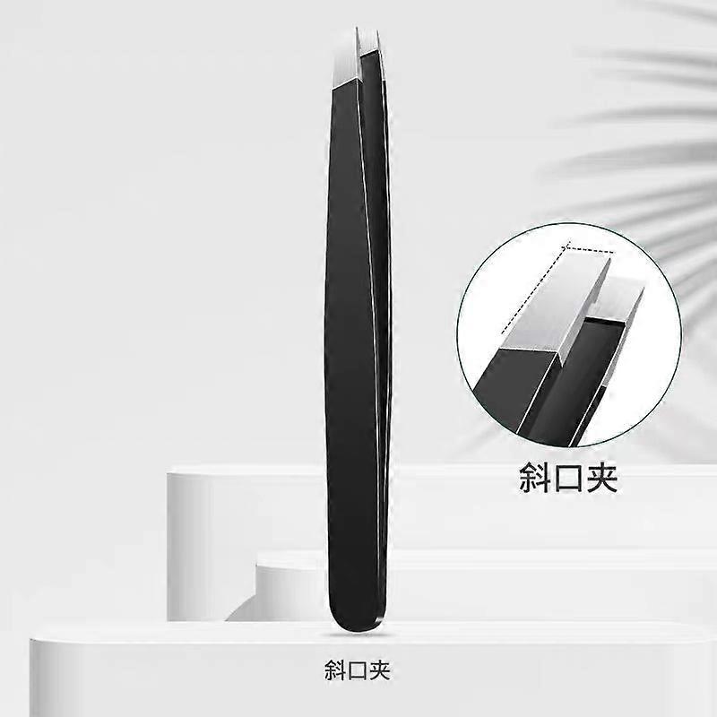 Stainless Steel Tweezer And Scissor Set with Cloth Bag Black Slant Tip Eyebrow Trimmer for Nose Facial Hair Blackhead Removal