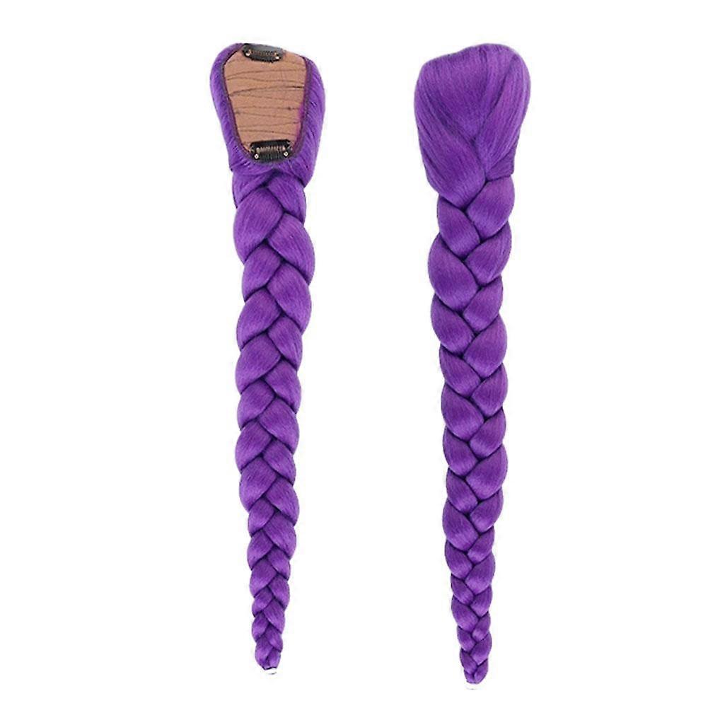 Purple Braided Ponytail Hair Extension for Kids Clip In Long 26 Inch Synthetic Braid for Halloween Christmas Party Cosplay