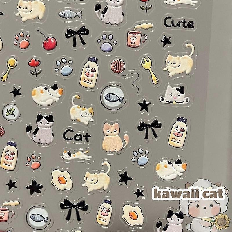 Cute Mini Cartoon Dog Cat 3D Relief Sticker UV-printed Bulging Decoration for Camera CCD & Phone Case Girl's Nail Decal Sticker
