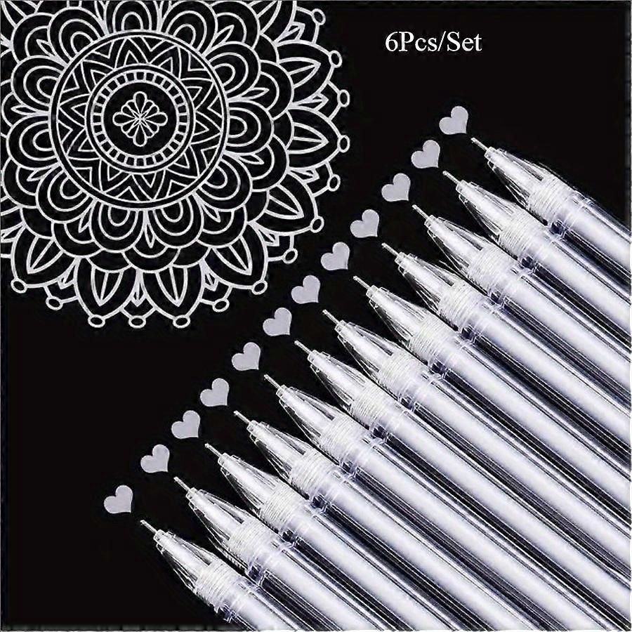 6pcs/Set Extra Fine 0.5mm Gel Pens, White Golden Silvery | For Black Paper Drawing, Sketching