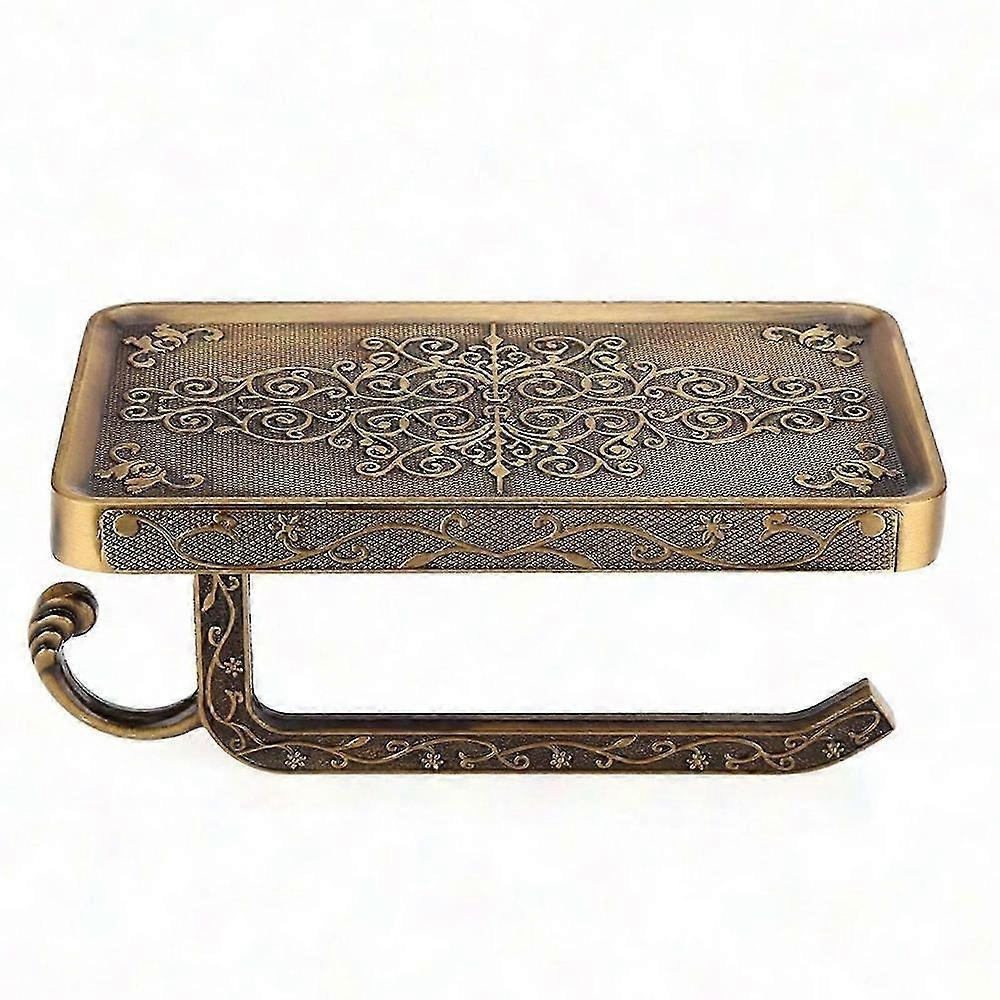 Antique Brass Wall-Mounted Toilet Paper Holder with Integrated Phone Shelf