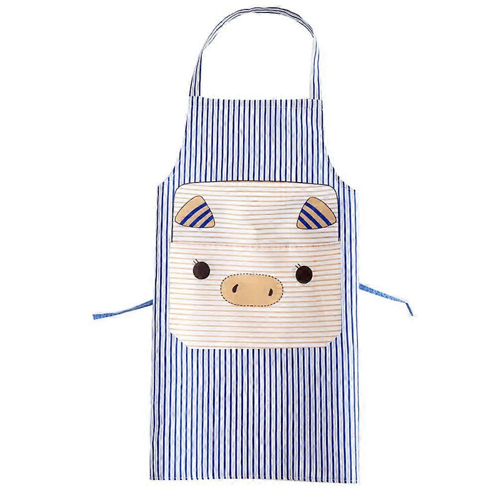 Polyester Apron Cartoon Pig Stripe Cleaning Apron Oil-proof and Dirt Proof Hanging Neck Apron Kitchen Cooking Pinafore (Random Color)