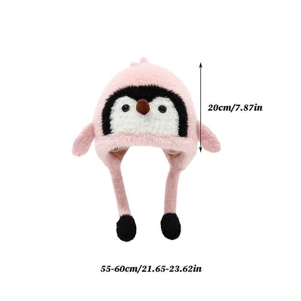 Plush Animal Hat Penguin Costume Headwear Winter Hat With Ear Flaps For Girls Boys Kids Vacation Fishing Camping