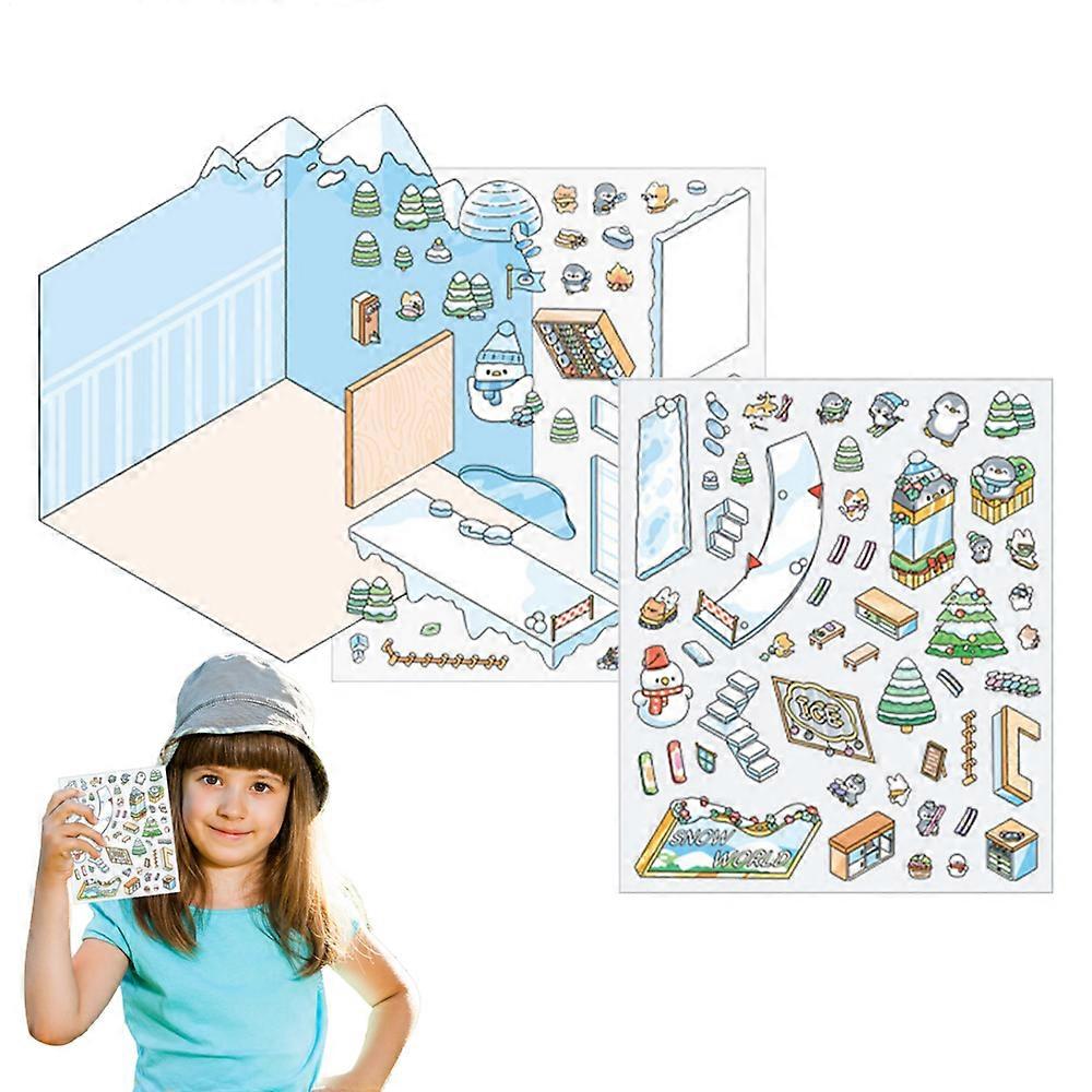 Cartoon Landscaping Decal Cabin House Miniature Decal 3D Cartoon Miniature Scene Landscape Stickers for Boys Girls Kids Family