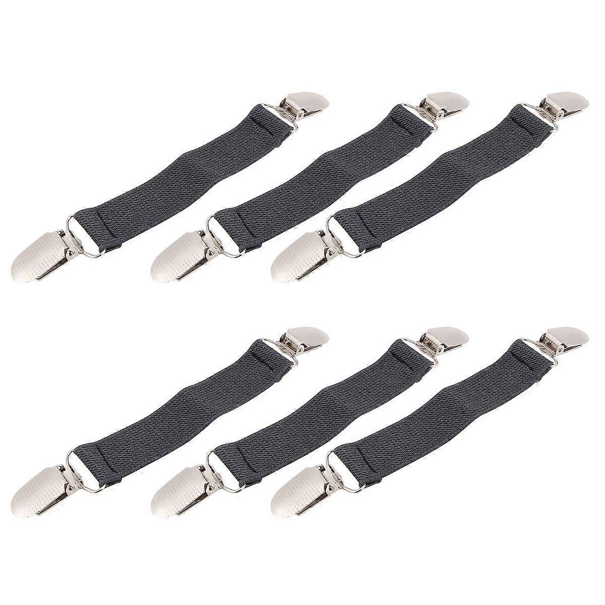 6 Pairs Multi-purpose Fixed Buckles Bed Sheet Anti-slip Fasteners Sofa Cushion Non-slip Clips Elastic Alloy Grippers (Dark Grey)