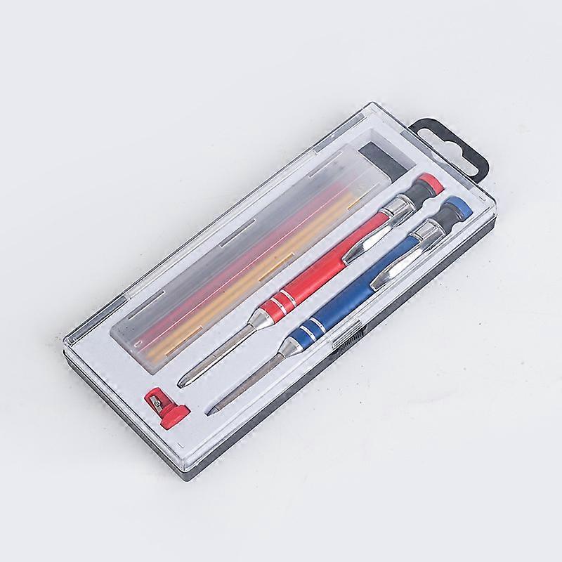 2.8mm Press Type Woodworking Pencil Set Metal Deep Hole Engineering Set with 2pcs Mechanical Pencils and 12pcs 3-color Refills