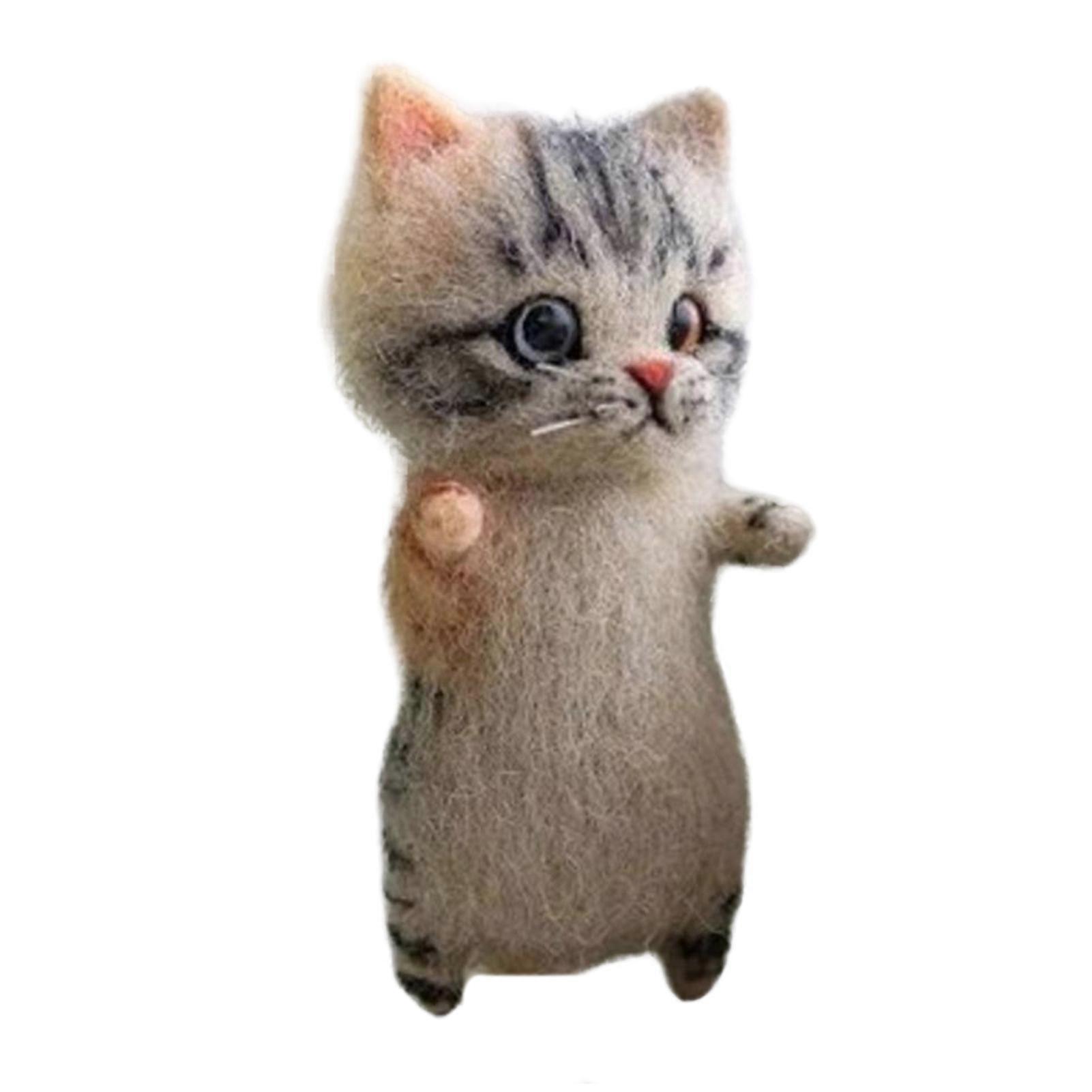 Felt Cat Doll DIY Wool Needle Felting Kit Handmade Felt Kitten Finished Cute Cat Felt Plush Stuffed Dolls For Kids Cat Lovers