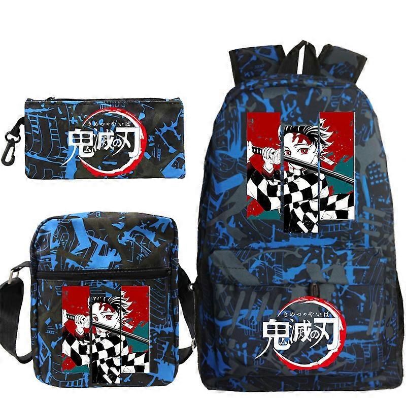 Kids Anime Backpack Demon Slayer School Backpack Shoulder Bags Pencil Bag 3pcs Set Girl Boy School Bags Students Travel Bagpack