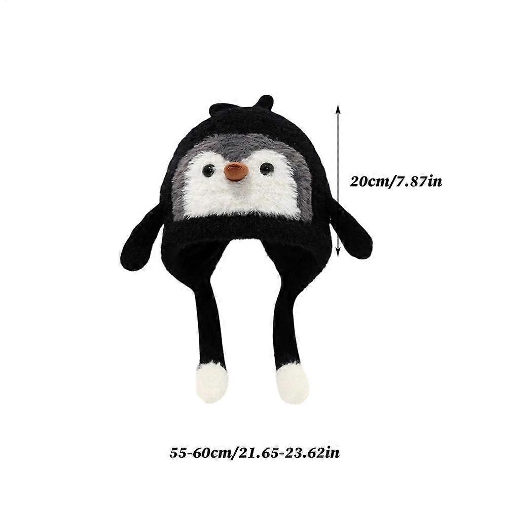 Plush Animal Hat Penguin Soft Costume Beanie Plush Winter Hat With Ear Flaps For Girls Boys Kids Vacation Fishing Camping