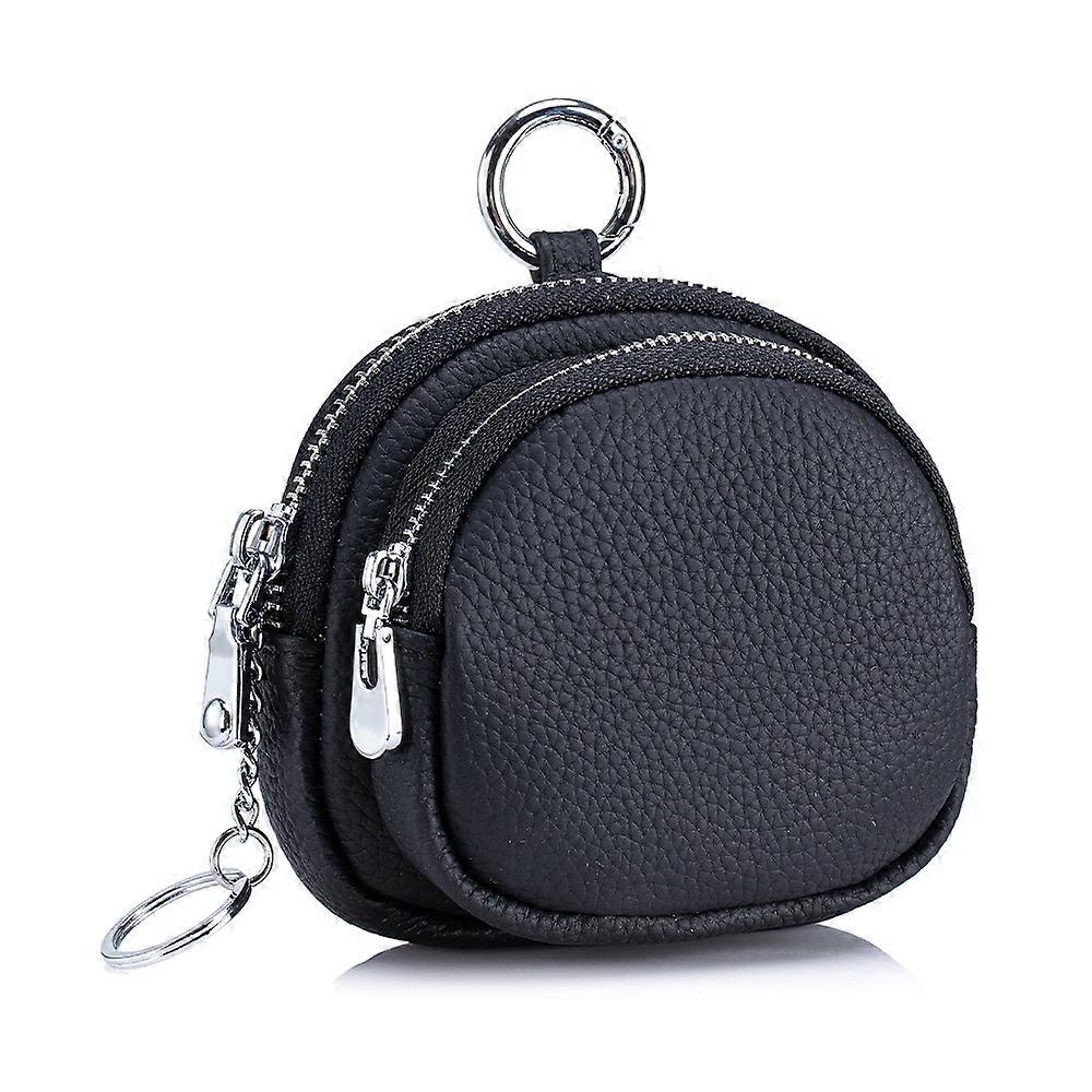 Genuine Leather Round Double-Zip Hanging Buckle Keychain Coin Purse - Premium Portable Coin Organizer with Keyring