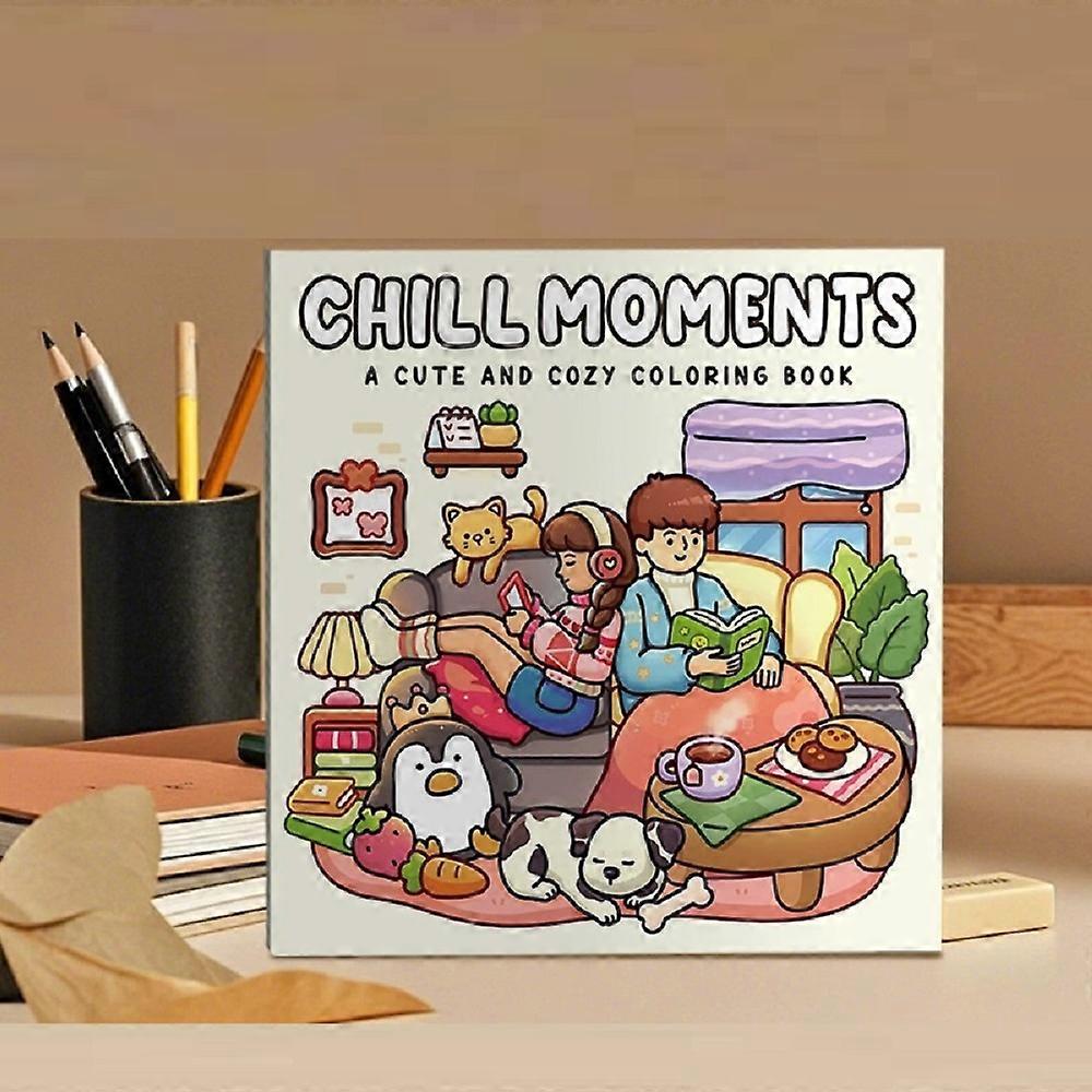 CHILL MOMENTS: Coloring Book for Adults Featuring Cute Cozy Daily Activities for Relaxation (Cozy Spaces Coloring)