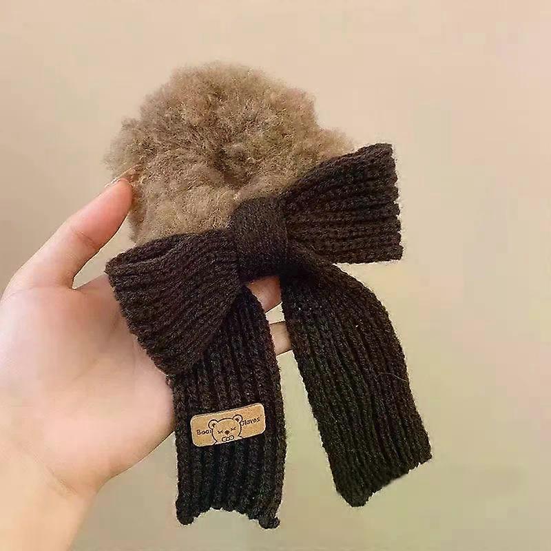 Girl's Sweet and Versatile Large Hair Ring Head Rope Hair Rubber Band Autumn and Winter Gentle Knitted Wool Bow Hair Rope