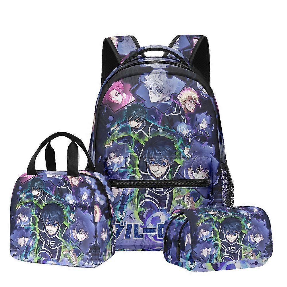 Luxury Popular Novelty Cartoon Blue Lock 3D Printed 3pcs/Set student School Bags Travel Notebook Backpack Lunch bag Pencil Case
