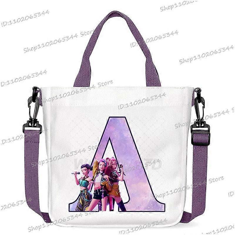 1pcs K-Pop Demon Hunters Alphabet A-Z Graphic Canvas Shoulder Bag Storage Travel Handbag Student Zipper Closure Crossbody Bag