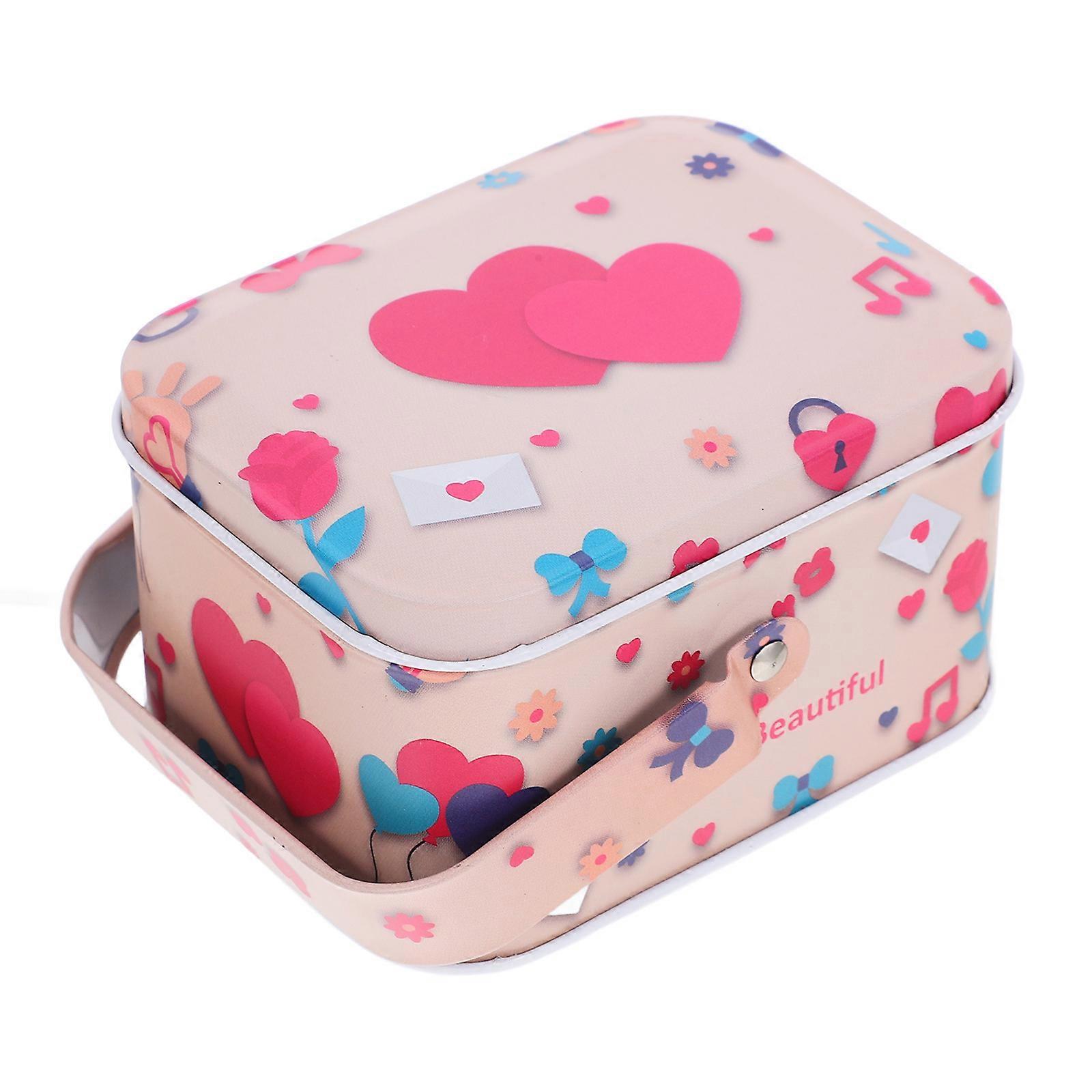 Metal Cookie Tins Decorative Containers Square Empty Tin With Handle For Christmas Celebration Portability Durable Tin Material 4.13X3.14X2.36IN 1Pack