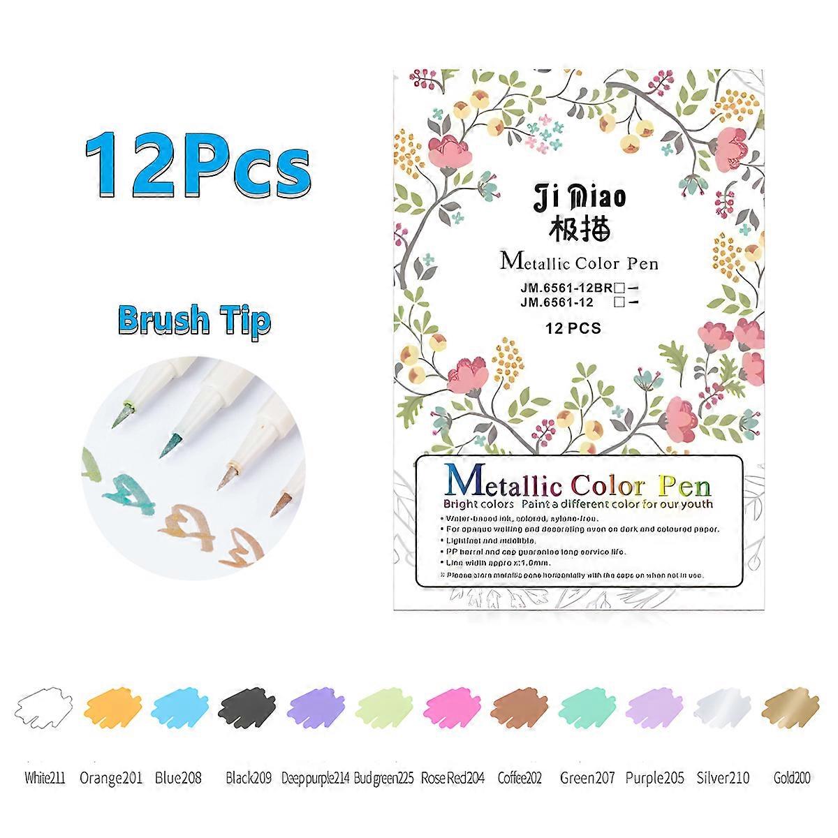 12-30 Metallic Marker Pens Brush Tip/Medium Tip for Black Paper, Adult Coloring, Card Making, Rock Painting, Crafts Art Supplies