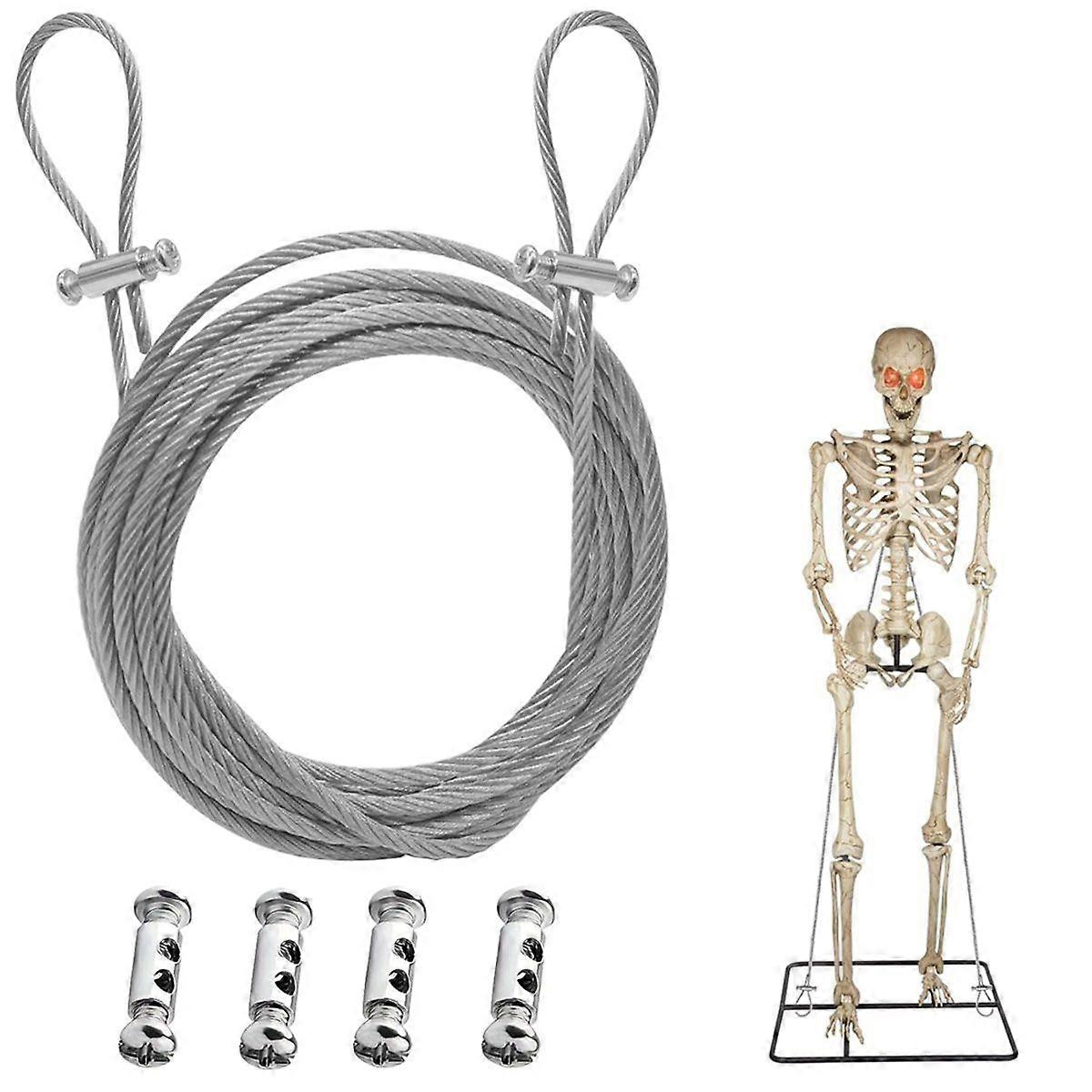 Package Includes: 1 piece of 12ft x 3mm steel wire, 4 adjustable wire locks, and 1 screwdriver Adjustable Lock Feature: Comes with replaceable adjustable locks. Adjust the steel wire to your desired length, then tighten the screws to secure it. Material & Performance (12 foot Replacement Wire): This 12ft replacement wire is made of coated stainless steel, featuring wear resistance and resistance. It can help your stand upright again and withstand harsh weather conditions like strong winds. Strength & Application for Decorations: It can bear strong tensile force and work stably in harsh environments, achieving better fixing and assembly effects. It provides higher-quality and more reliable support for Halloween and other decorations, allowing them to be displayed for a longer time. Versatile Uses: In addition to being a replacement part for 12ft skeletons, you can cut it to any length with a cutting machine. It is suitable for scenarios such as tensioning operations, wire railing projects, ships, landscape decorations, and construction projects. Color: As Shown Material: Alloy Package Contents: 1*pcs 12ft skeleton accessories Only the above package content, other products are not included. Note: Light reflection and different displays may cause the color of the item in the picture a little different from the real thing. The measurement allowed error is +/- 1-3cm.