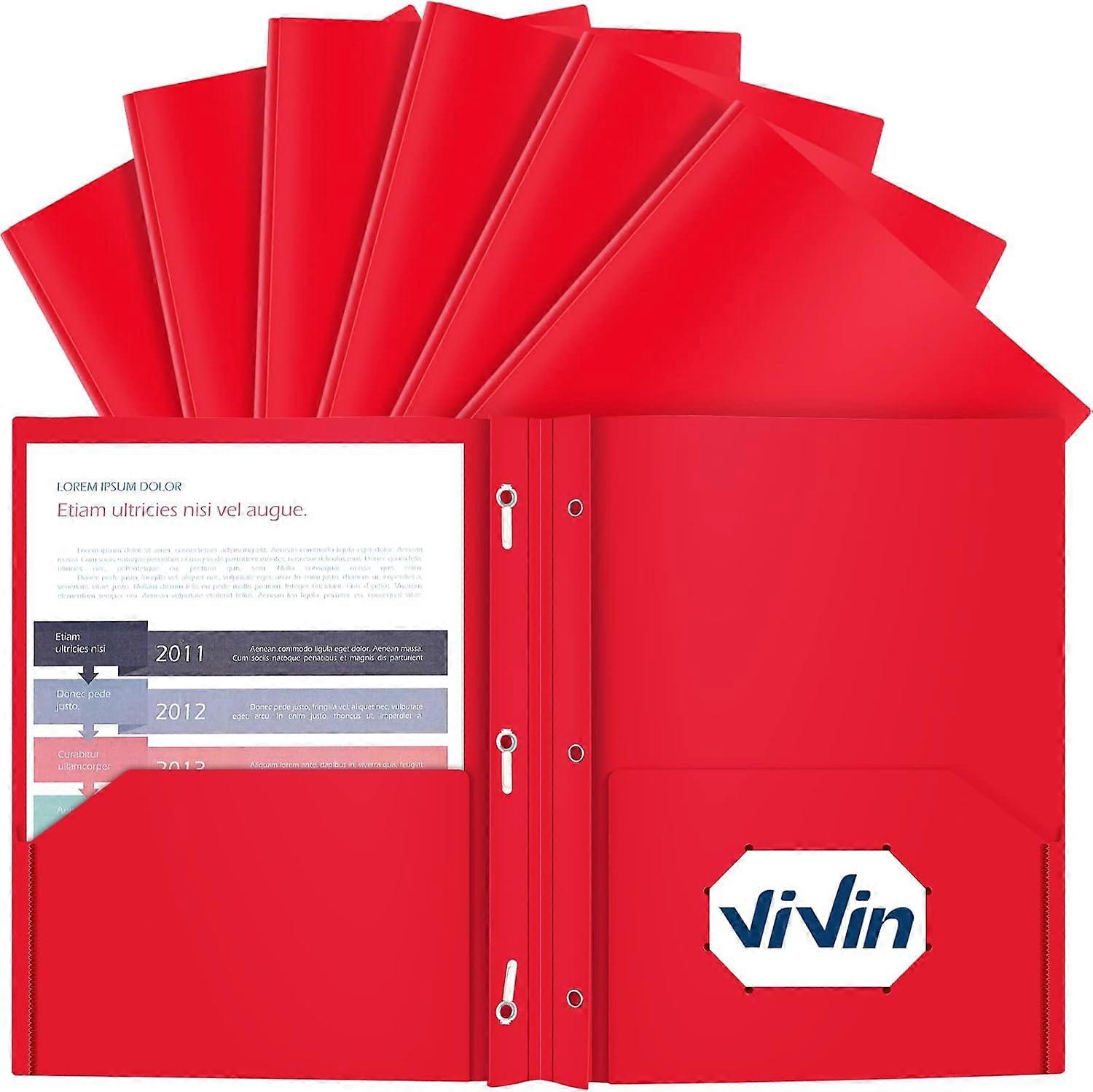 6Pcs Plastic 2 Pocket Folders with Prongs, Heavyweight, Letter Size Poly Folders with 3 Metal Prongs Fastener Clips