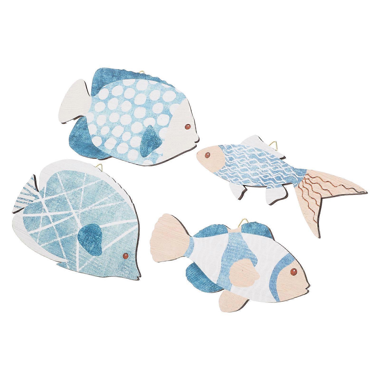 Wooden Fish Wall Decor Mediterranean Style Wall Decoration Blue for Cottages and Offices 4Pcs