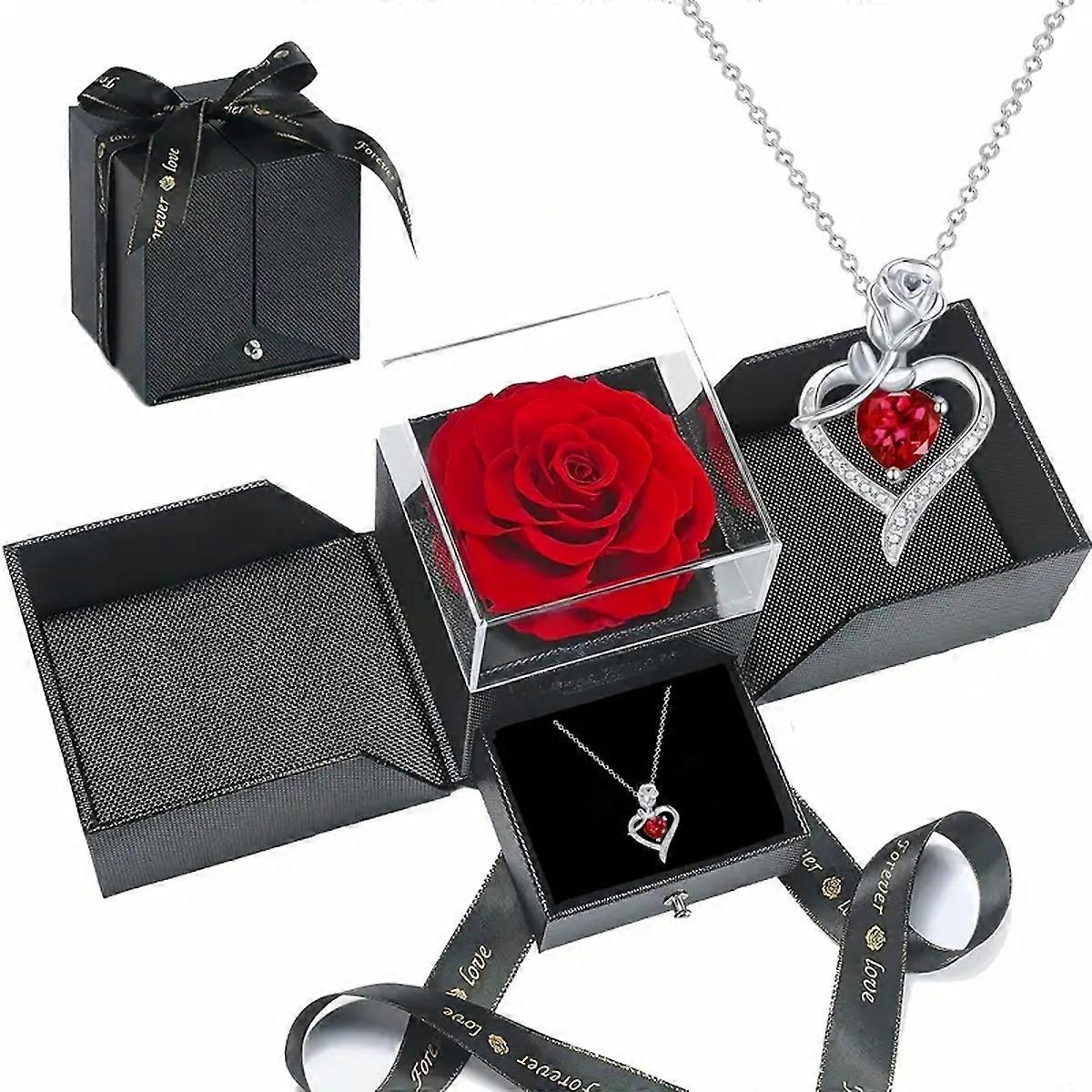 Elegant?Double-Door?Eternal?Rose?Jewelry?Box?with?Heart?Necklace?Perfect?Gift?for?Valentine'S?Day,Birthdays ,?Mother'S?Day