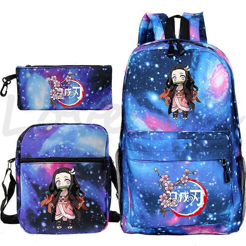 Anime Demon Slayer Backpack Kamado Nezuko Cosplay School Backpack 3pcs Set Women Travel Laptop Bag Student BookBag Kids Knapsack