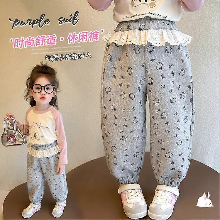 Sanrioed Hello Kitty Spring Summer New Style Girls Pants Casual Cartoon Lace Trim Children's Fashionable Trousers Kids Clothing