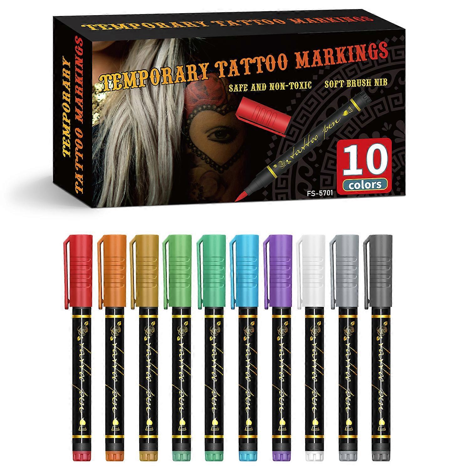 Temporary Tattoo Markers for Skin,10 Colors Tattoo Pens,Brush Tip,Bright colors,Face Paint Kit Cosmetic Quality,Halloween makeup