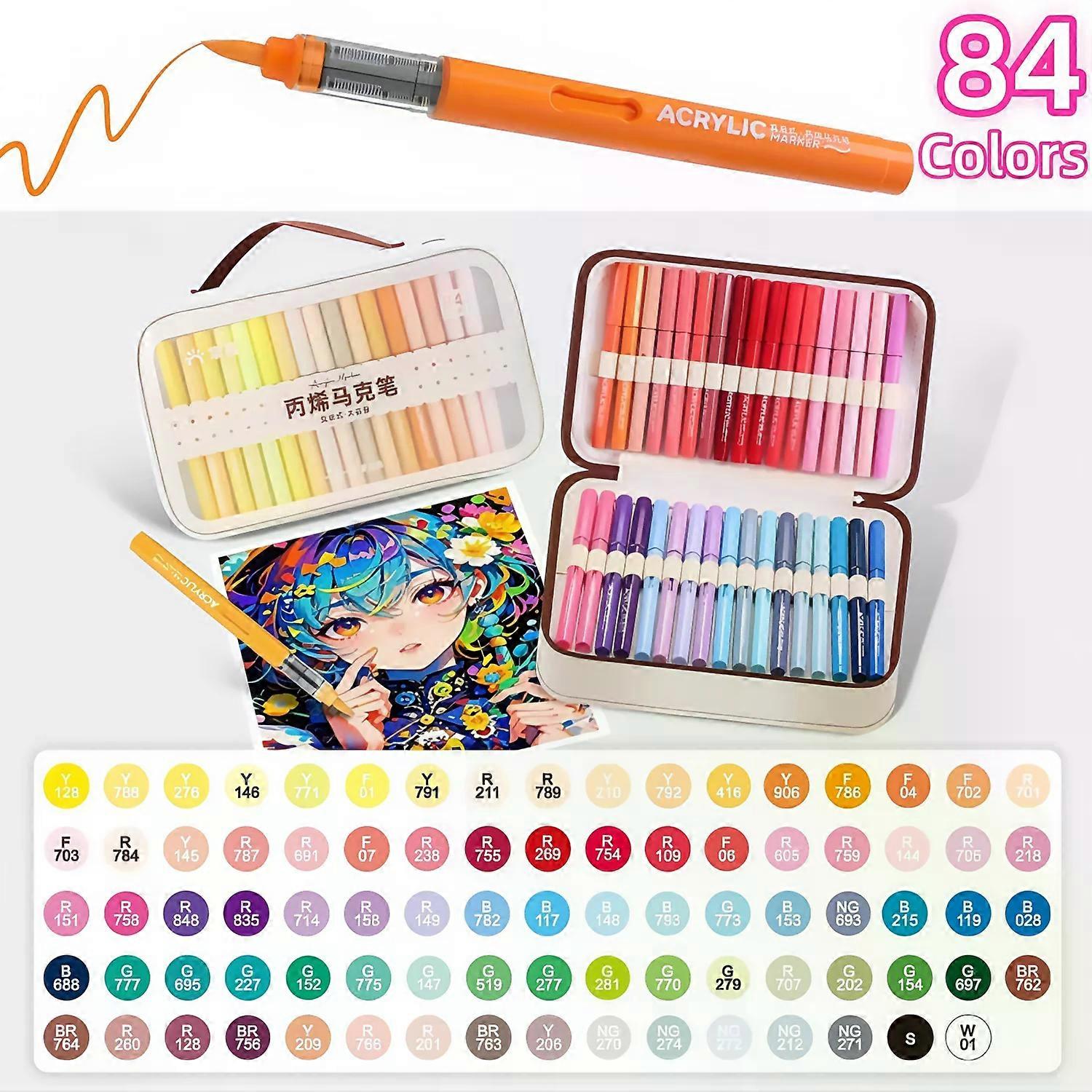 Premium Acrylic Paint Markers, Auto Liquid Ink, 24/36/48/60/84 Colors Non-Toxic Acrylic Pens, Soft Brush Tip, Portable storage