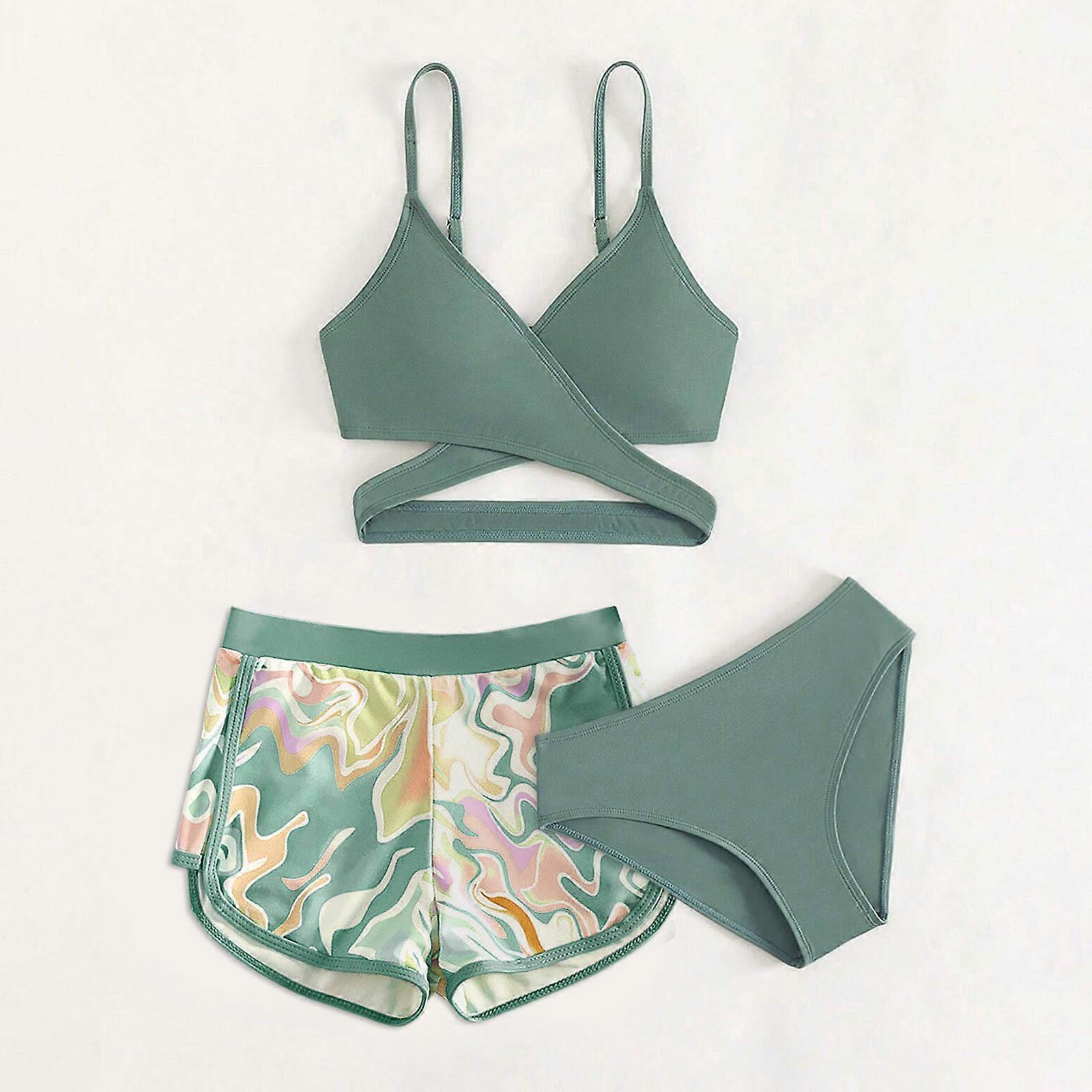 Toddler Girl's 3 Piece Swimsuits Soild Print Bikini Rullfe Bathing Suit Briefs Girls Bikini Swimwear Set Child Racing Swimsuit