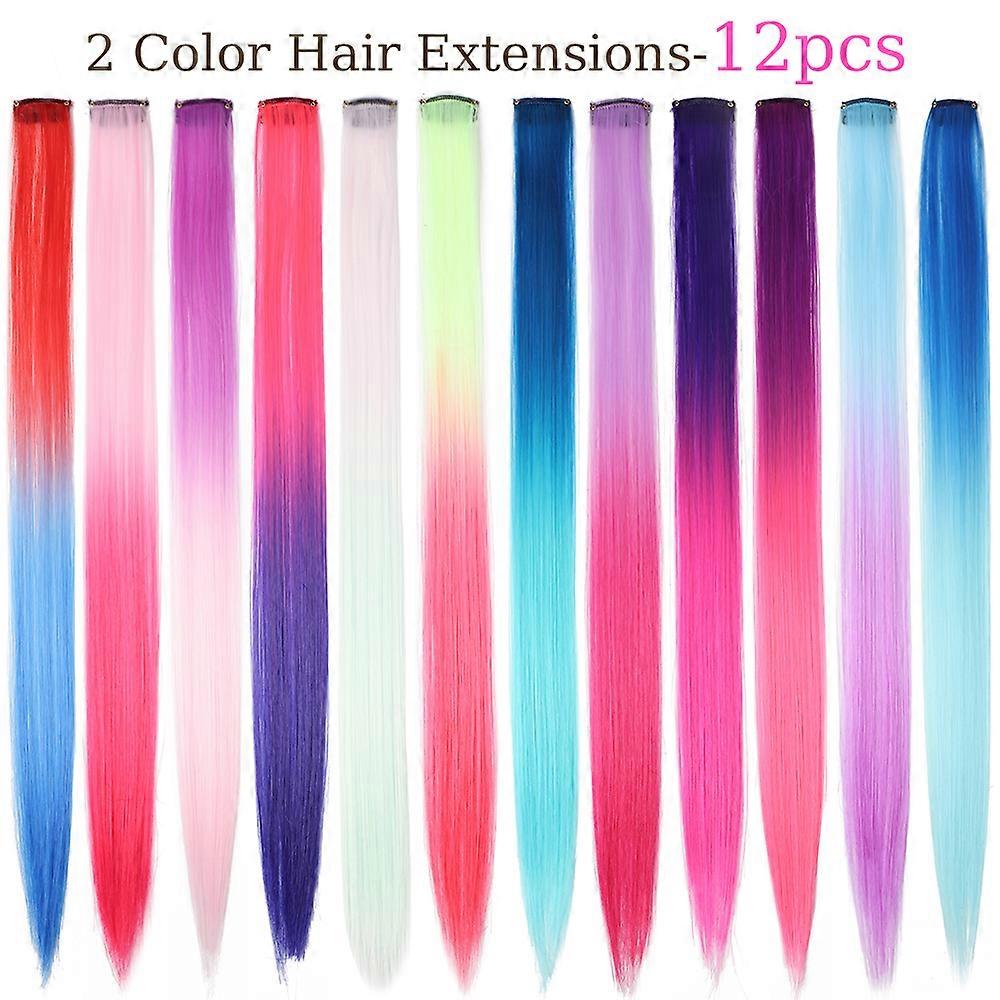 20 inch patchwork 3 color synthetic single clip rainbow color hair extensions 24 color hair extensions for girls holiday gifts