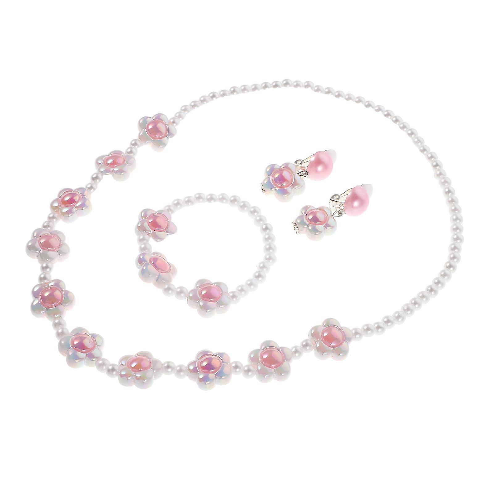 With its enchanting flower and pearl design, this kids jewelry set is good for little girls who love to accessorize. The set is crafted to be both stylish and sturdy, making it suitable for playful activities or formal events. It’s a delightful way to inspire confidence and add a touch of charm to any ensemble. Features -Color:Pink -Material:Plastic, Resin -Size:21.00X1.50X0.50cm/8.25X0.59X0.20in(Necklace) -Size:6.00X1.50X0.50cm/2.36X0.59X0.20in(Bracelet) -Size:3.50X1.50X1.00cm/1.38X0.59X0.39in(Earrings) -Elegant floral motif: the blend of pearls and floral designs adds elegance, making it suitable for daily wear and special occasions -Longterm material: constructed from good materials, this jewelry set retains its shine and resists fading, catering to quality conscious buyers -Complete jewelry set: includes a necklace, bracelet, and earrings, offers a complete accessory solution for various outfits -Adorable and charming: this cute jewelry set is good for little girls, adding a charming and princess like touch to their style -Comfortable to wear: designed for longterm wear, ensuring your child remains comfortable while looking stylish and elegant Package list: 1 x Necklace 1 x Bracelet 2 x Earrings 1 x Packaging Bag