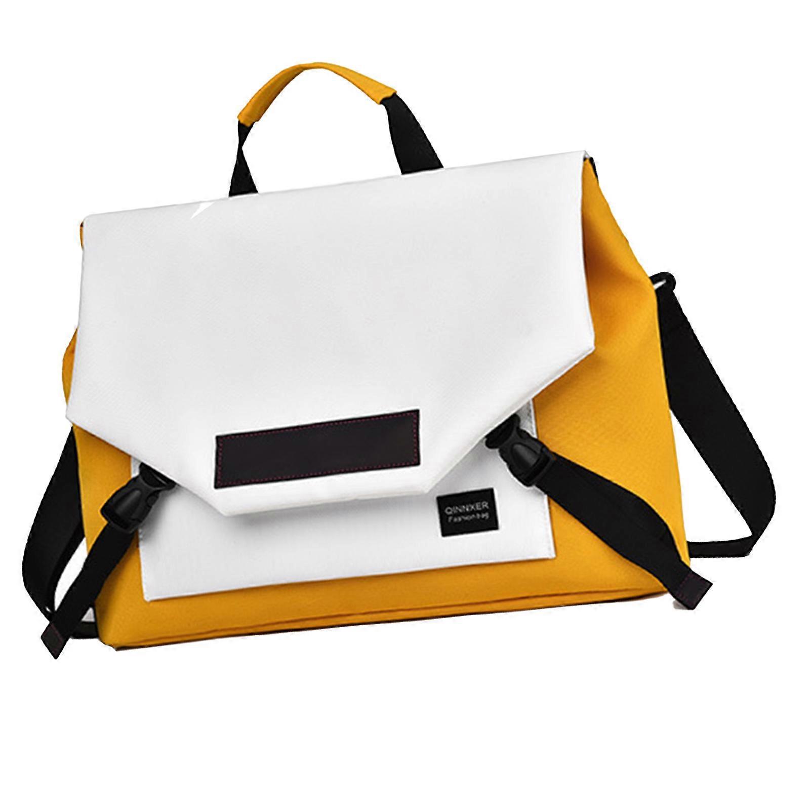Casual Handbag Travel Messenge Bag, Water Resistant Crossbody With Reflective Stripe For Everyday Shoulder Bag Yellow 15.6-inch