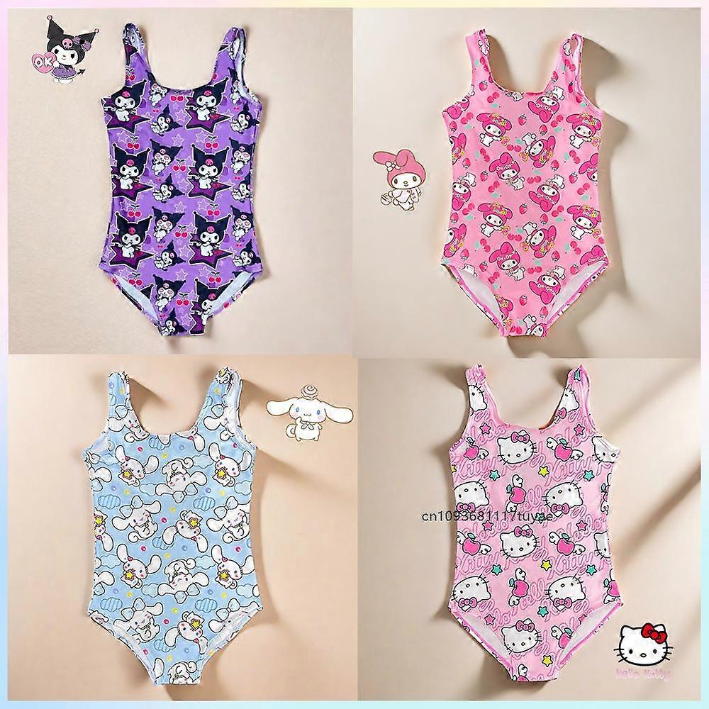 Sanrio Hello Kitty Kuromi Cinnamoroll Cartoon Anime Kids One-Piece Swimsuit Outdoor Beach Bikini Kawaii Holiday Gift for Girls