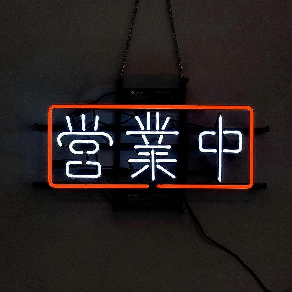 Open for Business Japanese 営業中 Real Glass Neon Sign - 17”x14” Authentic Shop Window Light & Wall Decor Art