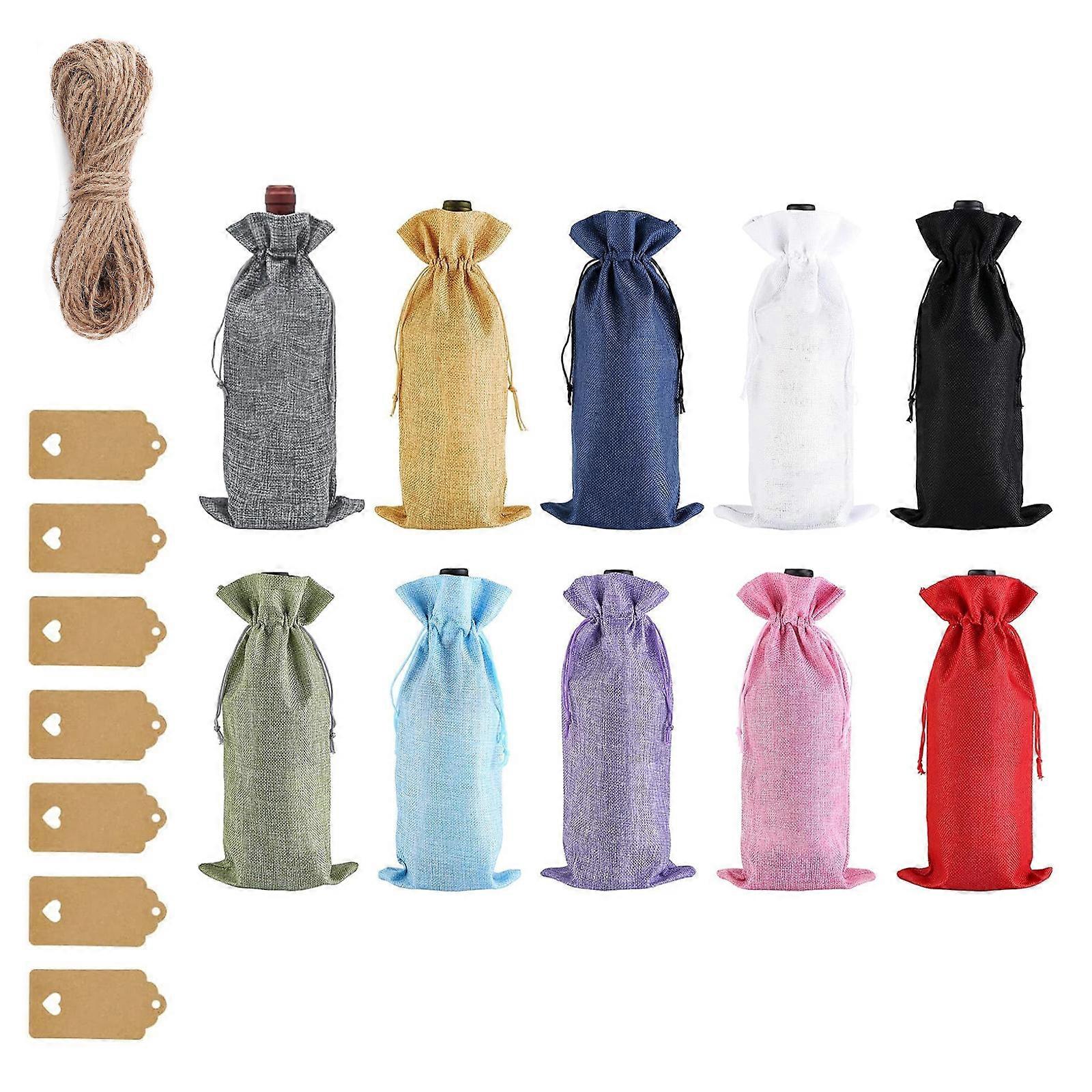 Pack of 10 Hemps Wine Bottle Bags with Drawstring Elegant Protective Cover Champagne Pouches Party Decoration Multicolor