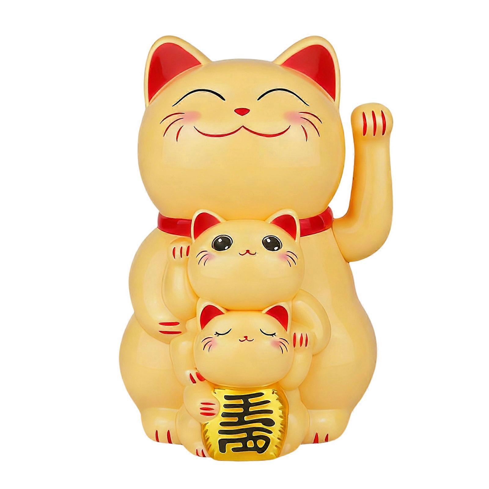 Lucky Cats Waving Arm Set,Solars Fortune Cats Statue Decoration Fengshui Ornament for Car Home,Office Restaurants Decors S Yellow